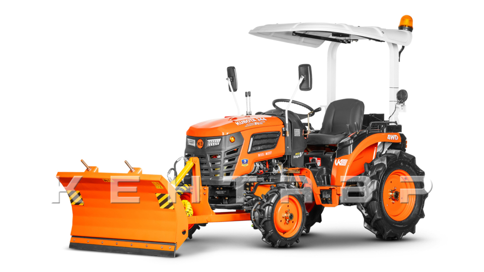 Отвал монтируется на трактора Kubota T-4K и Kubota T-344 в средней части остова, а также спереди – в месте крепления утяжелителей. Благодаря такому решению нагрузка распределяется равномерно, исключая деформацию передней рамки трактора и рамы отвала.