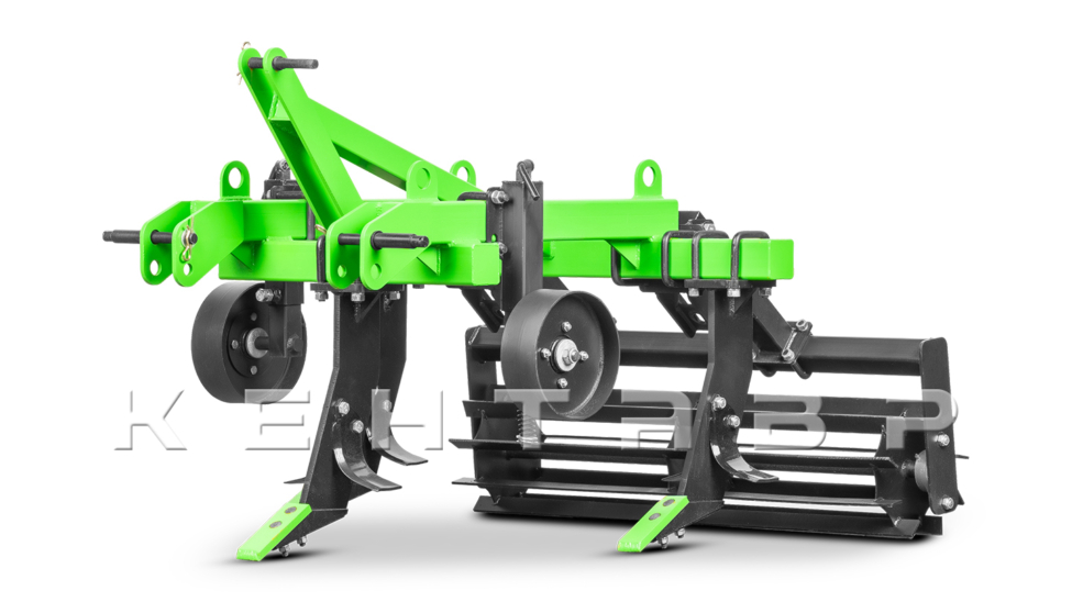 Крепёжные стремянки на несущей балке позволяют свободно перемещать рабочие стойки вдоль рамы, варьируя их количество и межстоечное расстояние до 50 см в зависимости от типа почвы и мощности трактора. На мягком фоне при работе одной стойкой достаточно тяги в 24 л. с.; полная трехстоечная конфигурация требует мощности от 50 л. с.