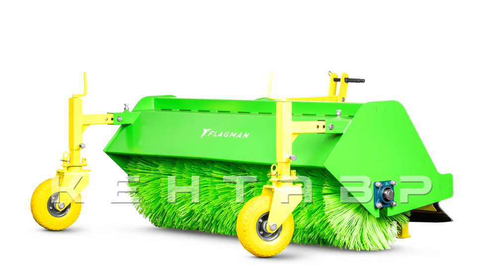 Щётка подметальная Flagman 1,5 предназначена для подметания мусора и снега на твёрдых покрытиях: дворы, тротуары, парковки, территории предприятий. Агрегатируется с тракторами с трёхточечной навеской категорий 1–2 и приводится через центральный редуктор от ВОМ 540 об/мин. Закрытый рабочий вал и сплошной кожух уменьшают пыление и разбрасывание материала.